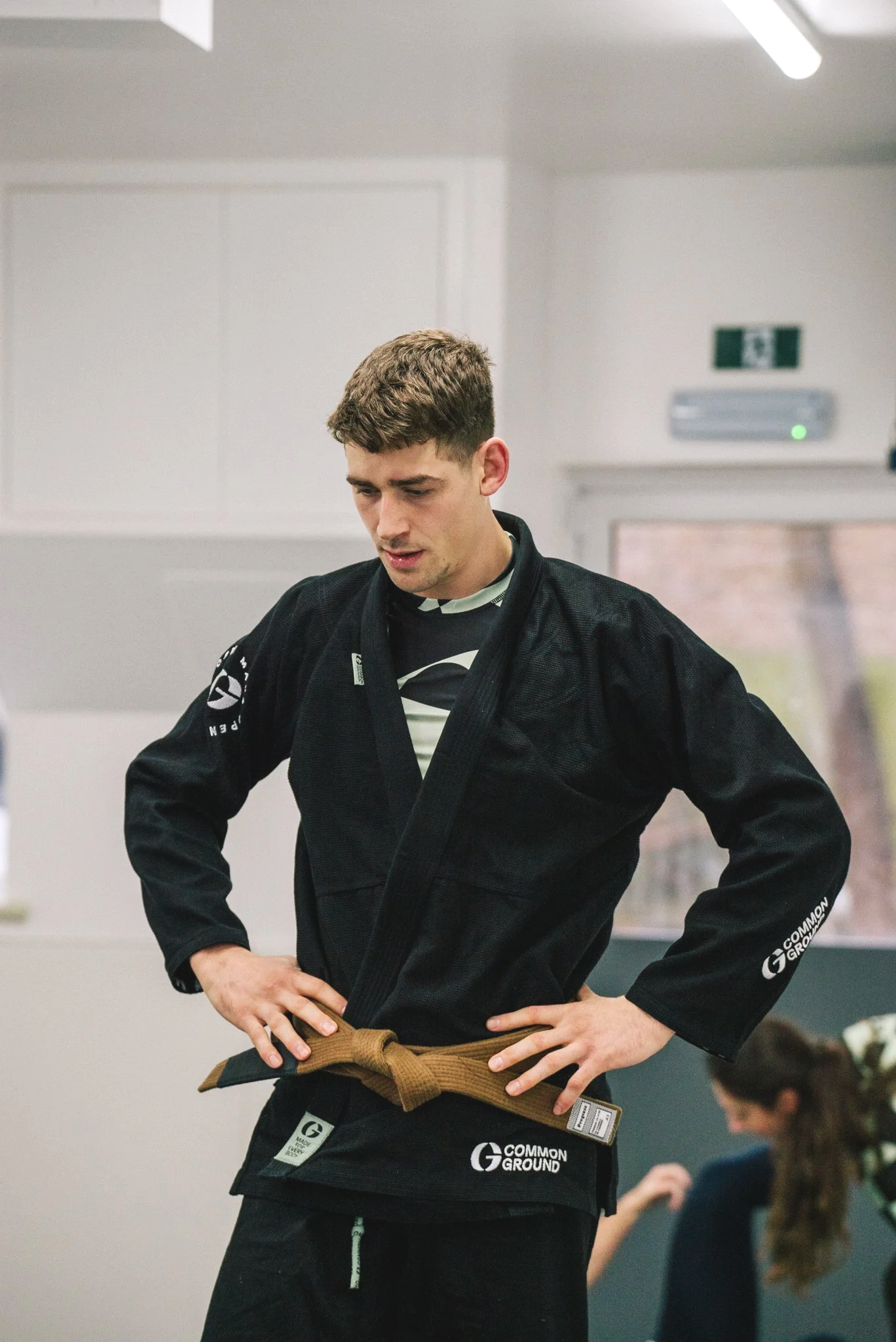 BJJ is primarily a ground based martial art, which uses the principles of pressure, leverage and timing to non-violently submit one’s opponent. Jiu Jitsu focuses on ‘grappling’ techniques with the application of joint manipulations and chokes, and is akin to judo, wrestling, sambo (and other grappling arts). It was developed, most notably by the Gracie family in Brazil, as a way for smaller, weaker fighters to control a larger opponent. It’s the groundwork seen in MMA.